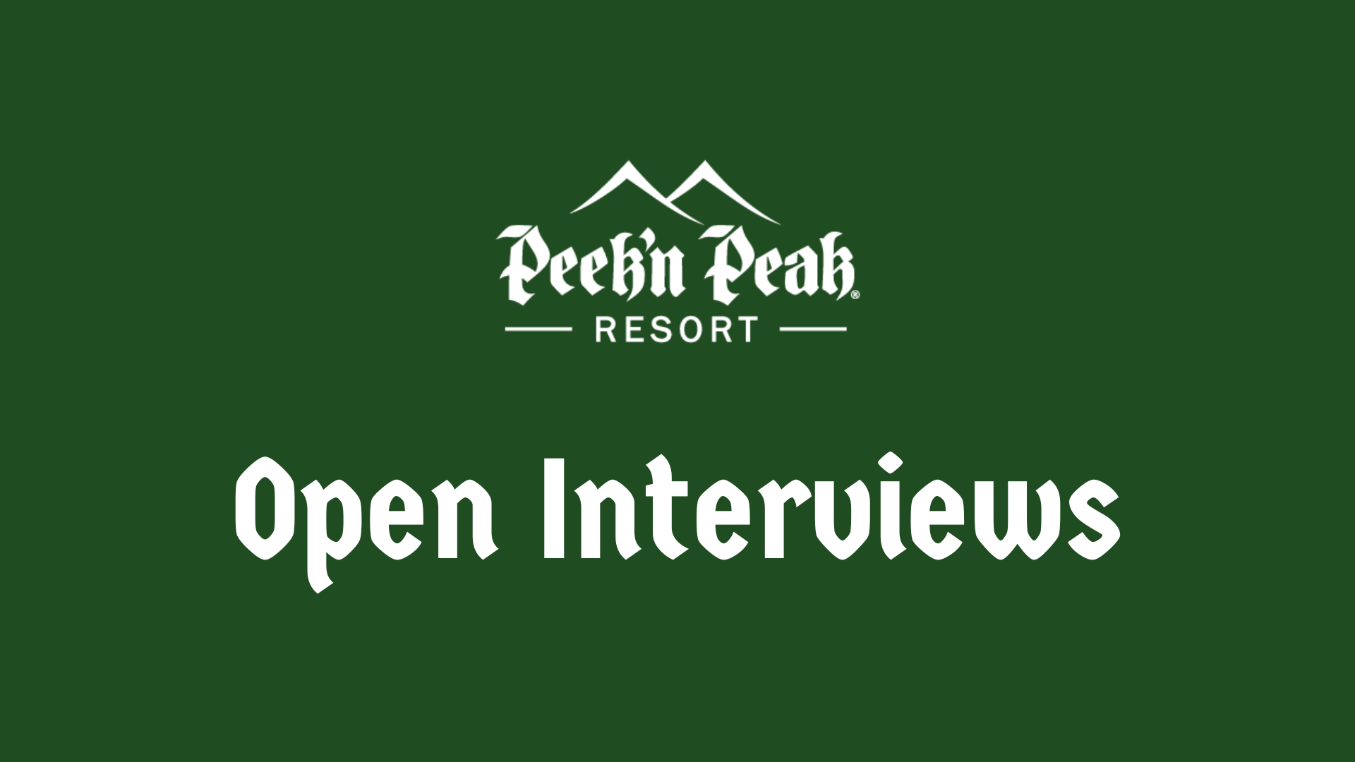 We’re Hiring at Peek’n Peak!Thanks to an incredibly successful season, we’re hosting Open Interviews at The Lodge at Peek’n Peak.We’re hiring full-time and part-time team members across multiple departments. No matter your experience level, we have opportunities available.Now Hiring:– Food & Beverage Team Members– Supervisors– Restaurant Front-of-House Cleaning Staff– Lift Operators– Ski Maintenance